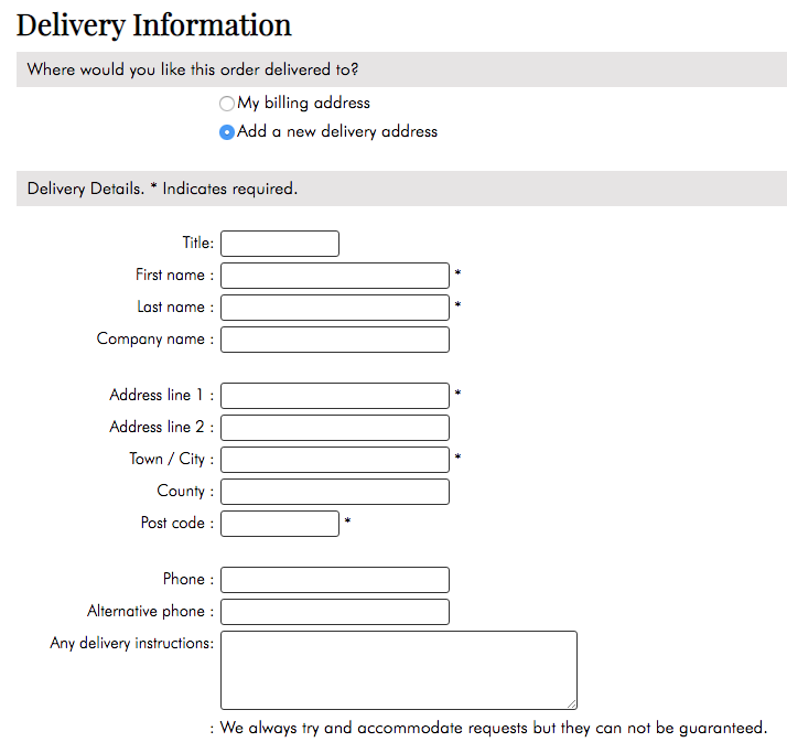 After you have progressed to the delivery information page, you will see a section allowing you to add additional notes to your order.