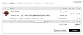 After you have chosen your order and picked your preferred delivery date, you will see the basket screen below.