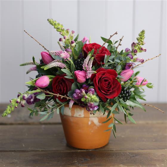 Every bouquet at Van Arthur is made by hand in our North Harrow florist, using the best of what is in season that day. This means the exact flowers or sundry items shown, such as vases or baskets, may sometimes need to be swapped for something similar. If we do make a change, it will always be in keeping with the style, colour palette and value you have chosen, and we will never compromise on the full, generous look you expect from us.